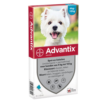 Bayer Advantix Spot On 100>4kg 4 Pipetten ist ein schnell wirkendes Produkt, das Flöhe, Zecken und Läuse innerhalb von 24 Stunden tötet. Darüber hinaus schützt das Produkt auch vor Sandfliegen, Mücken und Stechfliegen. Advantix schützt den Hund 2–3 Wochen vor Sandfliegen, 2–4 Wochen vor Mücken und bis zu 4 Wochen vor Stallfliegen, Flöhen und Läusen.