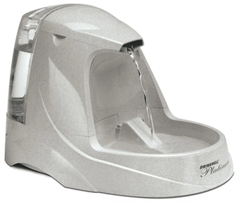 De Drinkwell Platinum fontein is de ultieme drinkfontein qua stijl en design. Dit volledig nieuwe design gebruikt hetzelfde gepatenteerde stromend water systeem als de originele Drinkwell. Dit systeem moedigt uw huisdier aan om meer te drinken en ze op die manier tevreden, gezond en gehydrateerd te houden. De Platinum fontein heeft een nieuwe klik-deksel om te voorkomen dat deze per ongeluk open gaat en een nieuwe zo goed als stille pomp.