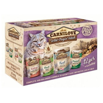 Das Carnilove Beutel Multipack 12X85 gr ist ein komplettes Nassfutter für Katzen, getreidefrei und ohne Kartoffeln mit einer besonderen Fleischquelle und hoher Verdaulichkeit. Dieses Multipack des leckeren Nassfutters von Carnilove enthält vier verschiedene Geschmacksrichtungen. So können Sie variieren, was Sie Ihrem kleinen Freund servieren. Das Multipack enthält jeweils drei Stück jeder Geschmacksrichtung. Die Geschmacksrichtungen sind: Truthahn mit Baldrian, Ente mit Katzenminze, Forelle mit Echinacea und Fasan mit Himbeerblättern. Lecker als Alleinfuttermittel oder als Ergänzung zu Trockenfutter.
