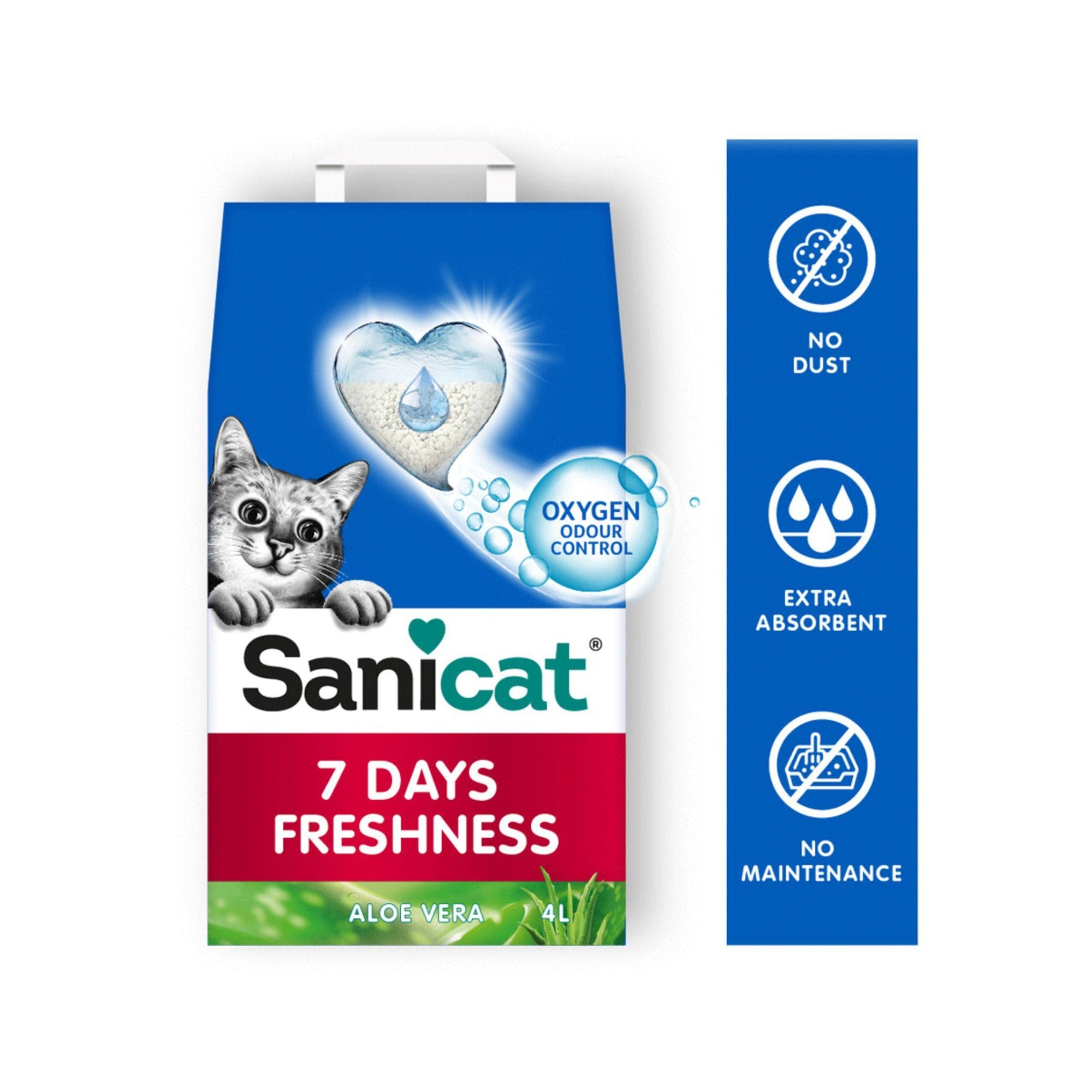Katten waarderen hygiëne minstens net zo veel als mensen en vinden een schone kattenbak dus net zo prettig. Met de Sanicat 7 Days Aloë Vera kattenbakvulling blijft de kattenbak langer fris. De vulling is zeer absorberend, neemt vocht efficiënt op en laat geen stof achter.